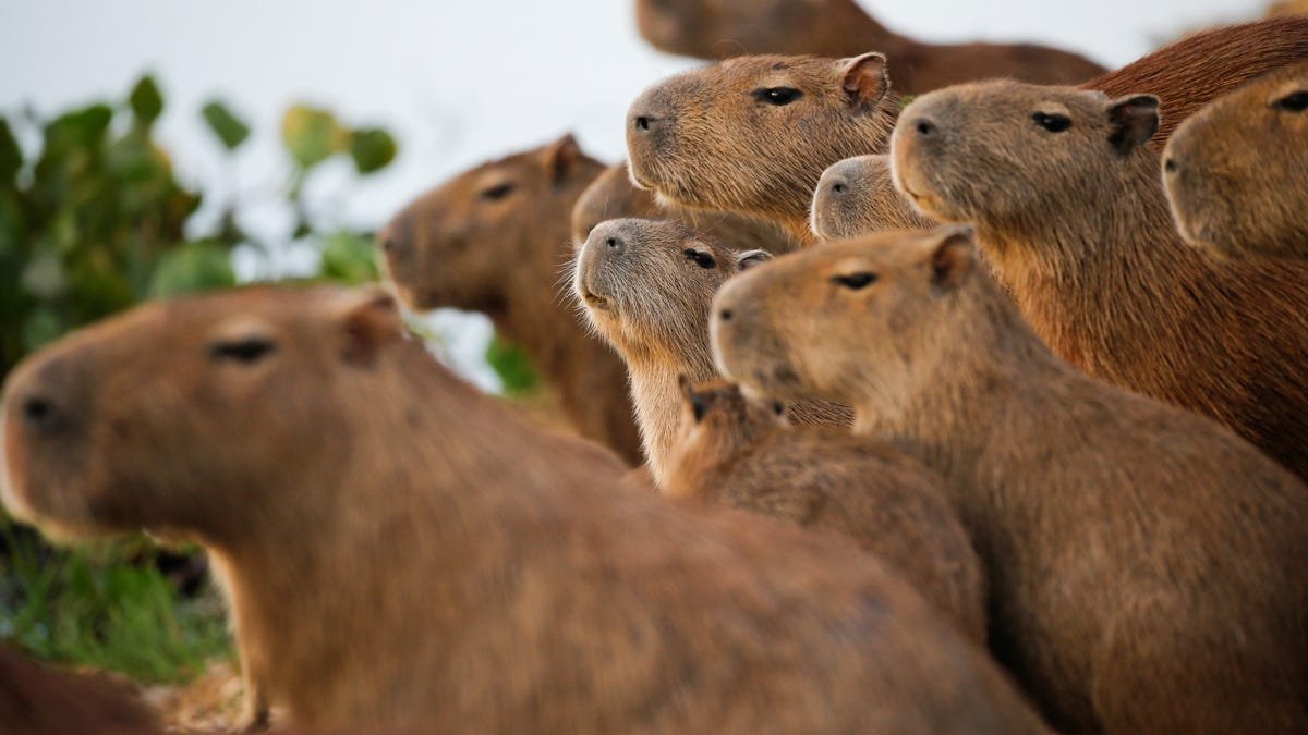 Capybara is the largest rodent in the world. They live in South America and are associated with guinea pigs and rock caves, but with animals that are farther away from chinchillas and agutis.