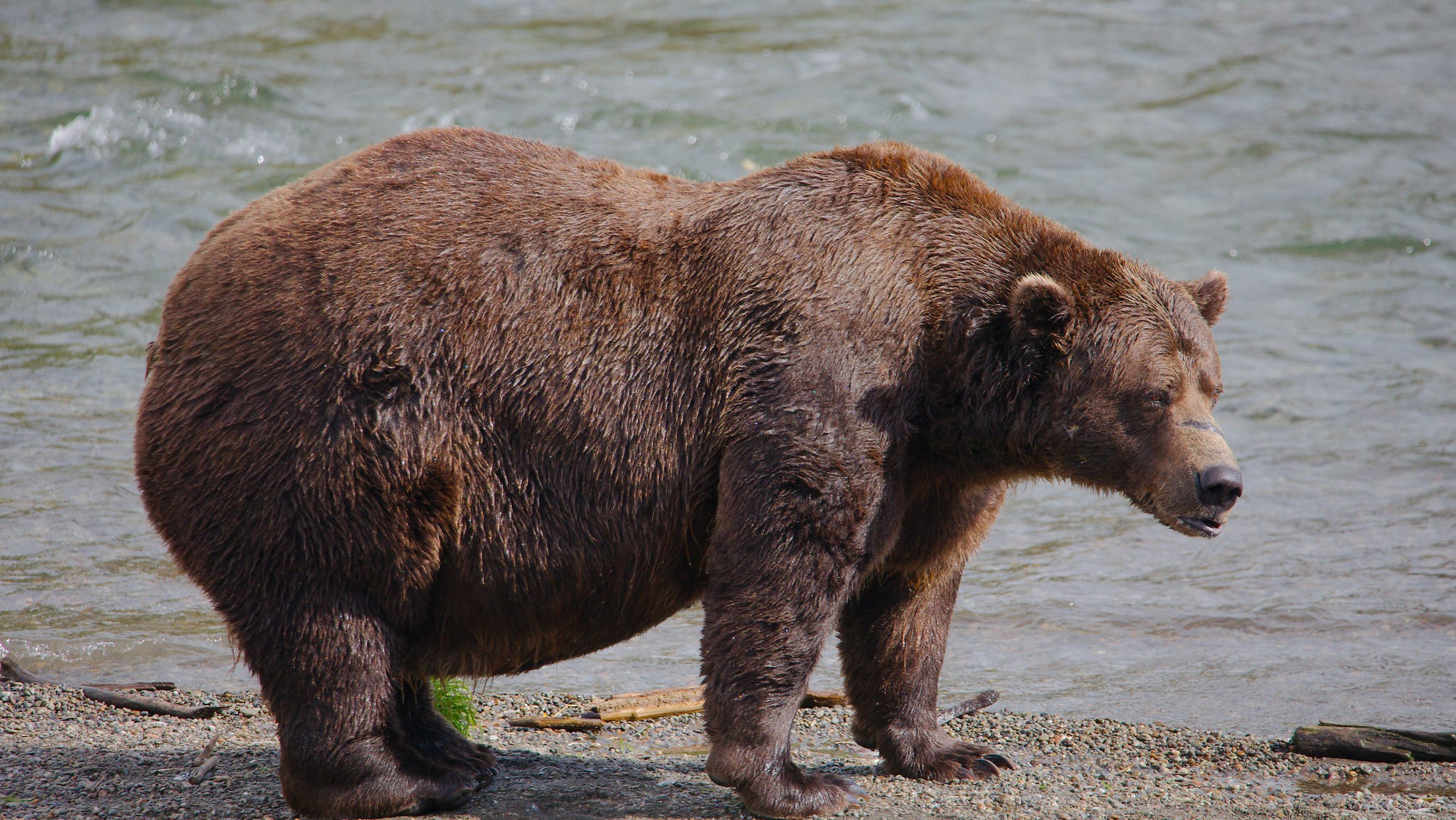 The Fat Bear Week website describes Chunk as one of the biggest bears along the Brooks River. It feasts the east bears of Katmai’s famous bears with salmon all summer.