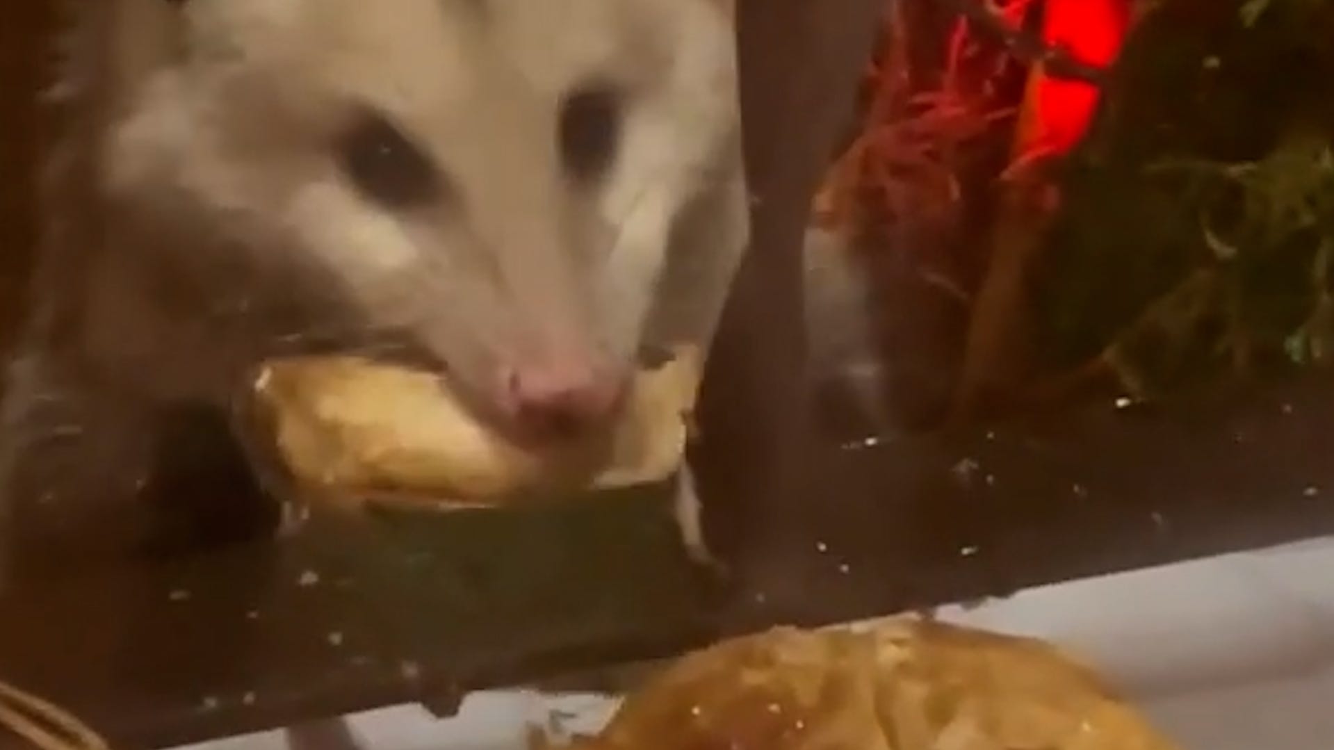 The Thanksgiving banquet was held outdoors. Watch the creatures come to the table