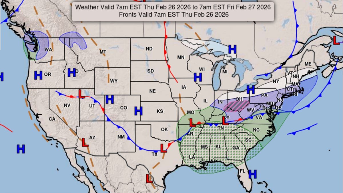 Second, another storm later in the week will bring wintry weather to much of the Northeast, with snow north of the storm’s path and bands of sleet and freezing rain in the transition zone. However, the National Weather Service said in its Feb. 24 online forecast that significant uncertainty remains in the storm’s path.