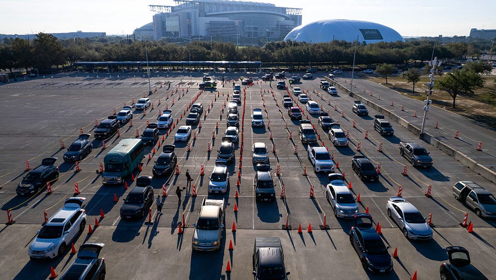 Hundreds of cars were waiting in food bank lines in Texas as SNAP benefits were suspended due to the government shutdown.