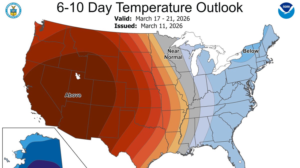Overall, the weather pattern over the next week or so will be similar to what we’ve seen for most of the winter, with colder weather in the east and hotter weather in the west.