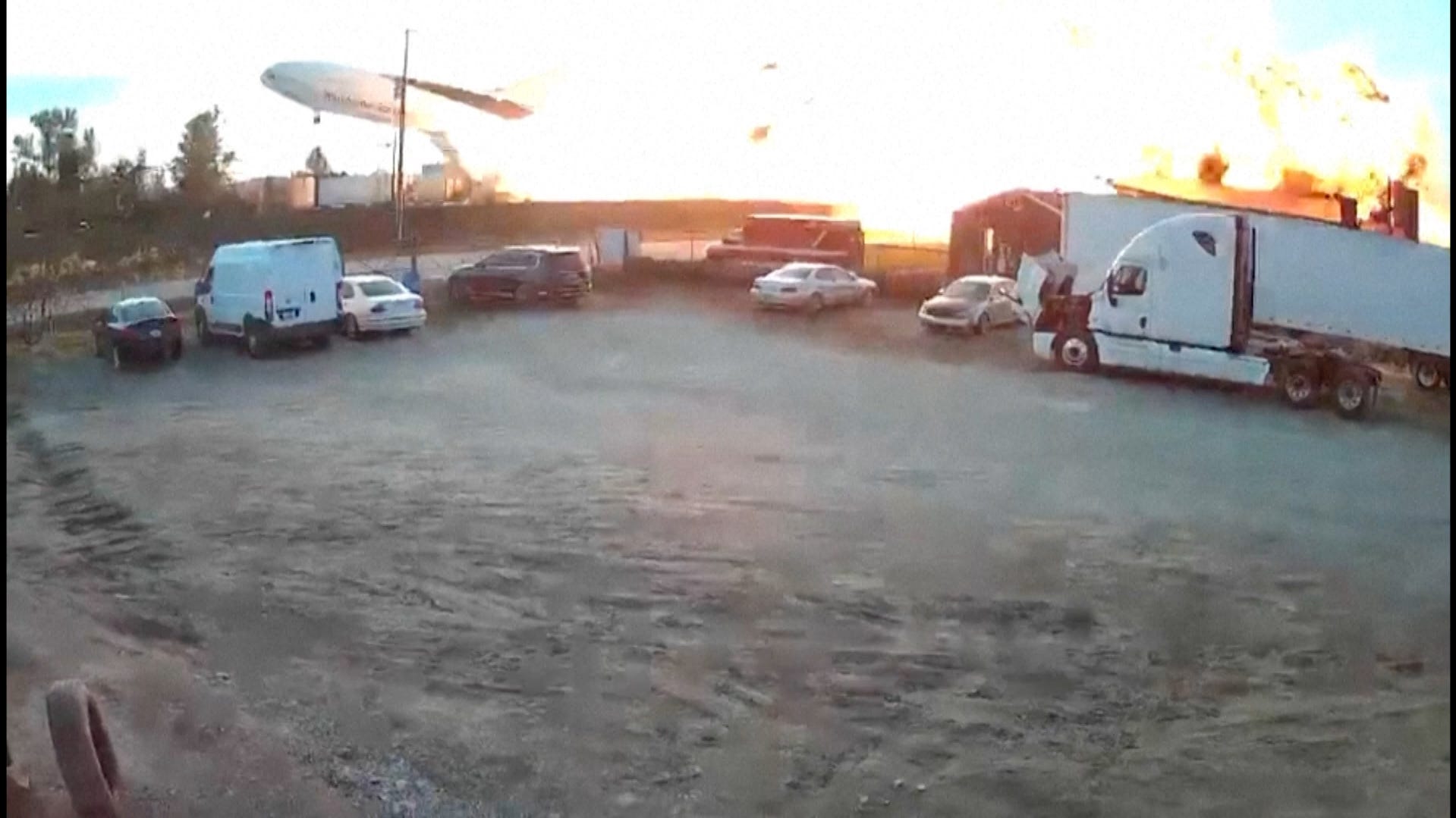 Surveillance camera captures the moment a UPS cargo plane crashes in Kentucky