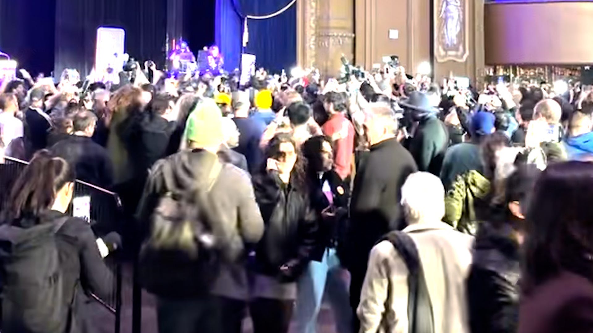 After Mamdani exited the stage with his wife, mother and father, the audience remained in place as Marvin Gaye and Tammy Terrell’s Motown ballad “Ain’t No Mountain High Enough” played.